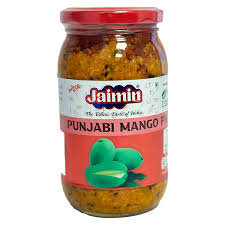 Jaimin Punjabi Mango Pickle (400g) is an authentic, homemade-style Indian condiment made from raw mango chunks, blended with traditional spices like mustard seeds, fenugreek, and red chili, all preserved in oil